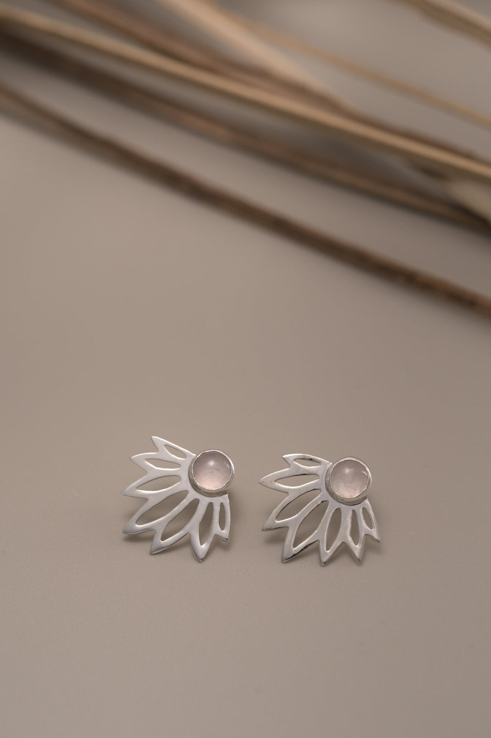Yucca is a pair of earrings with two pale pink quartz semi-precious stone. Known for its ability to thrive in harsh conditions, yucca plant, is a symbol of strength and resilience. It represents protection and spiritual cleansing.