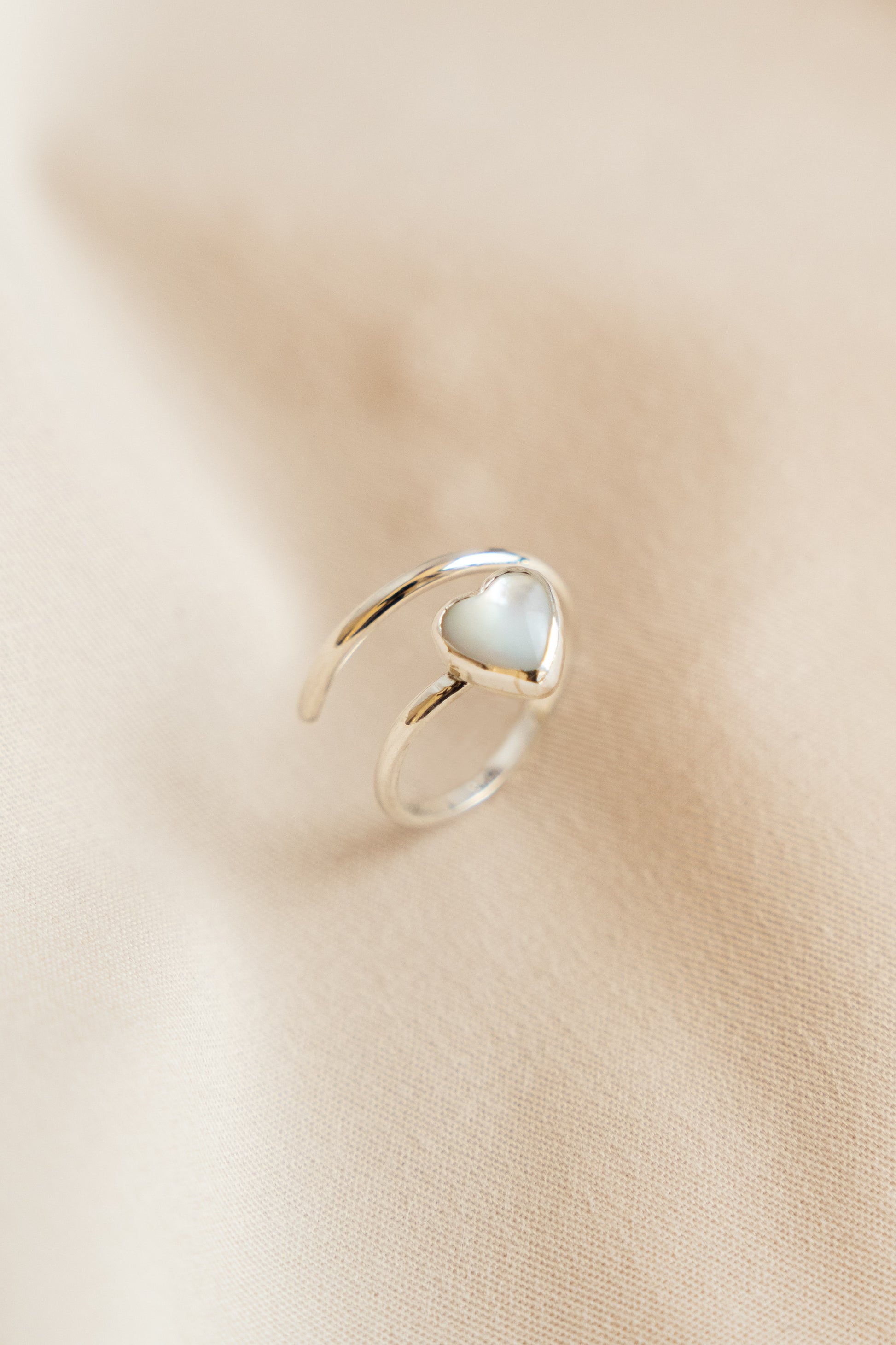 Pearl Heart is an adjustable ring with a "mother of pearl" heart-shapped shell. Mother of pearl shells are symbols of nurturing, strenght and protection. They are linked to the transformative energy of the ocean and the moon. They are representing personal growth and rebirth.