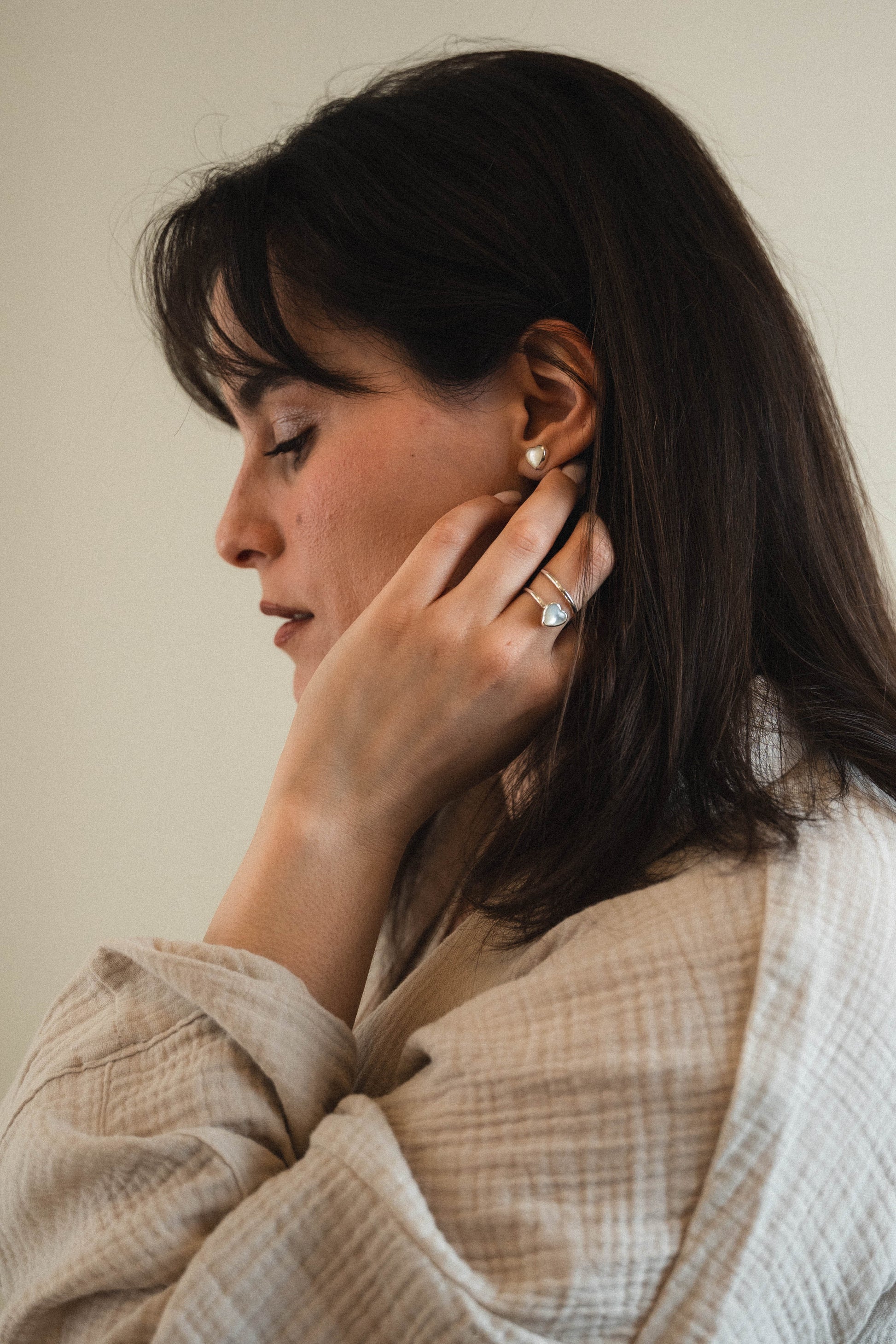 Every piece of jewelry is designed and handcrafted in our workshop in Patras, Greece. Each form is shaped with care and precision, infused with our passion for art. Each piece carries the silent imprint of the maker's touch, a unique rhythm that speaks of authenticity.