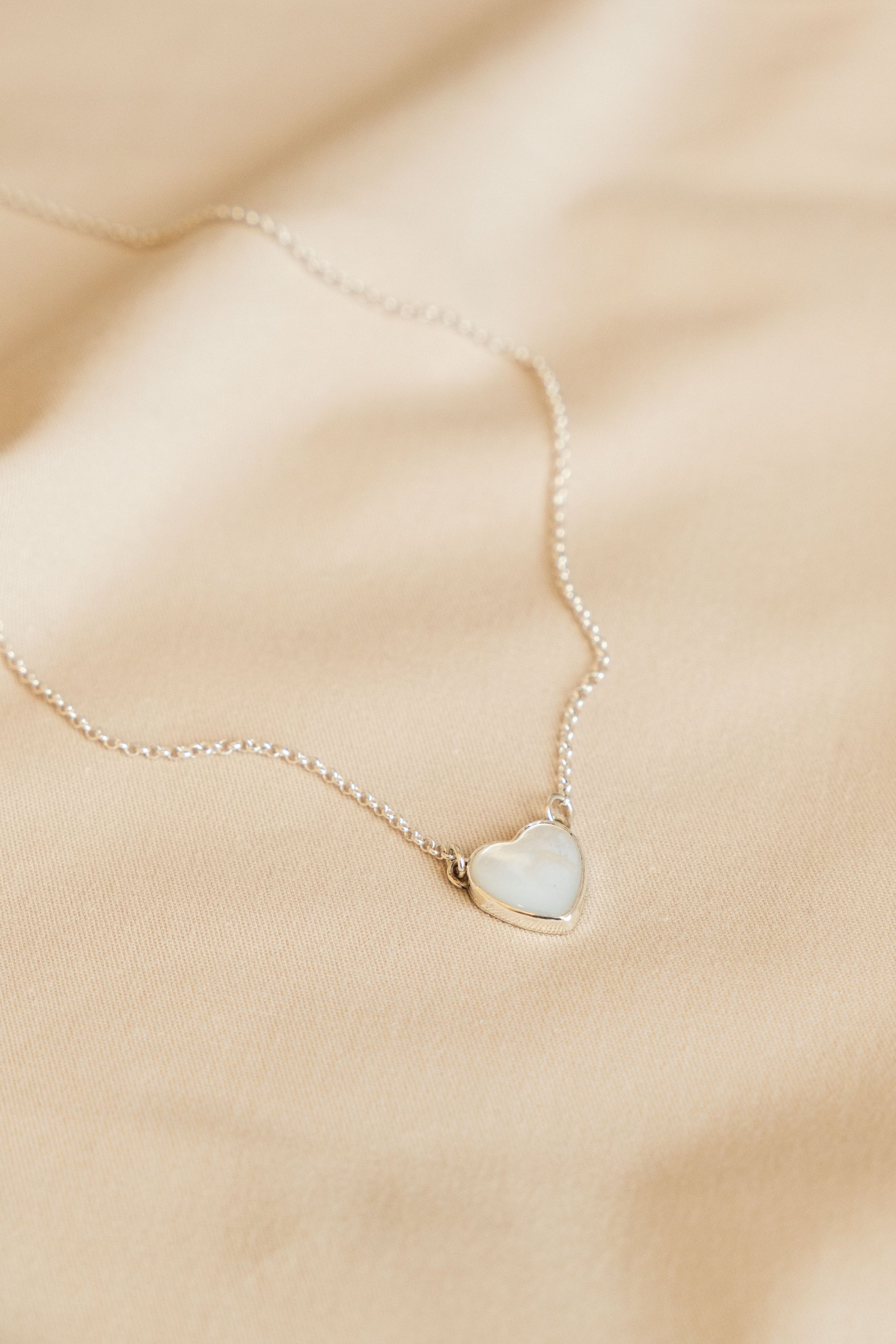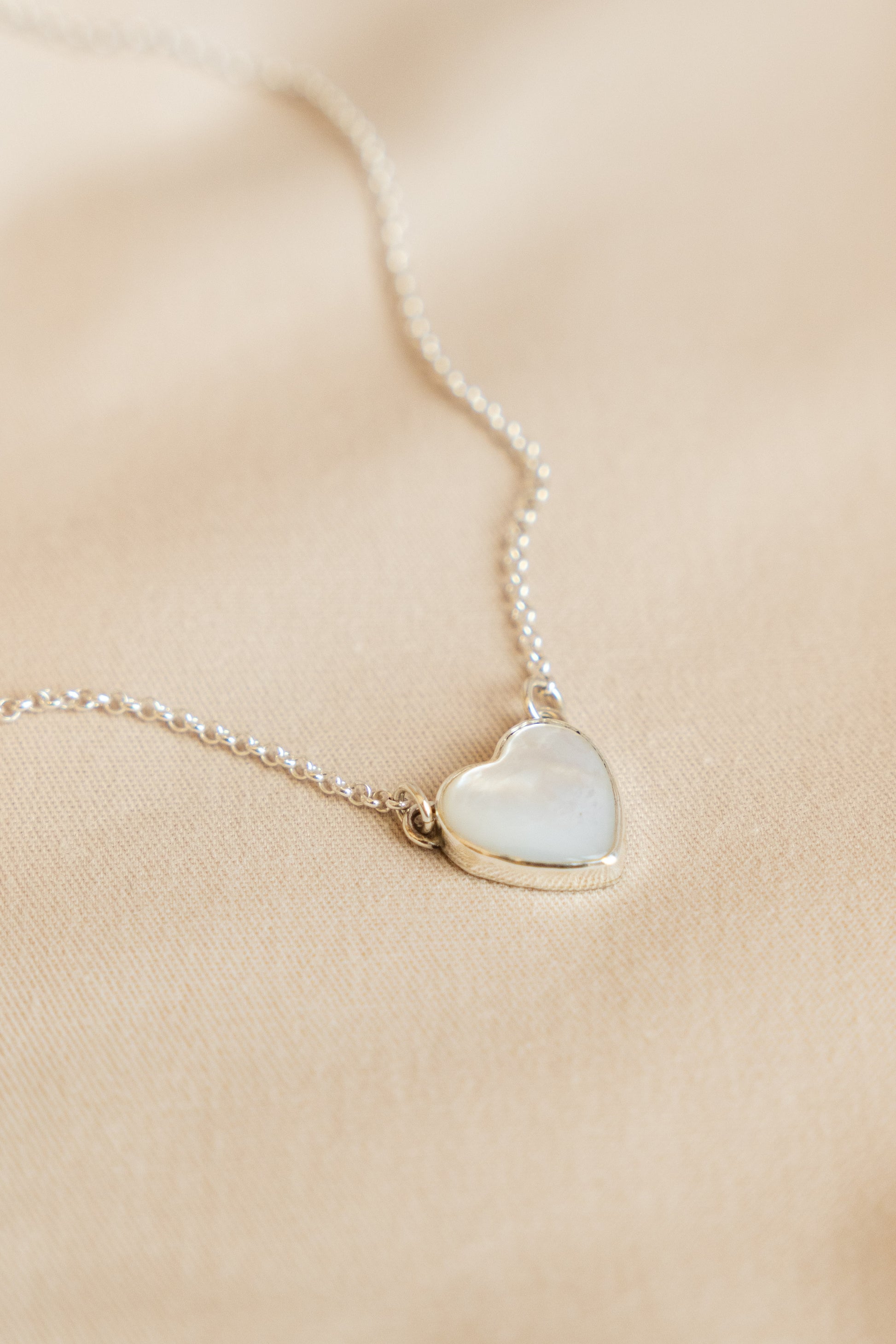Pearl Heart is a necklace with a "mother of pearl" heart-shapped shell. Mother of pearl shells are symbols of nurturing, strenght and protection. They are linked to the transformative energy of the ocean and the moon. They are representing personal growth and rebirth.