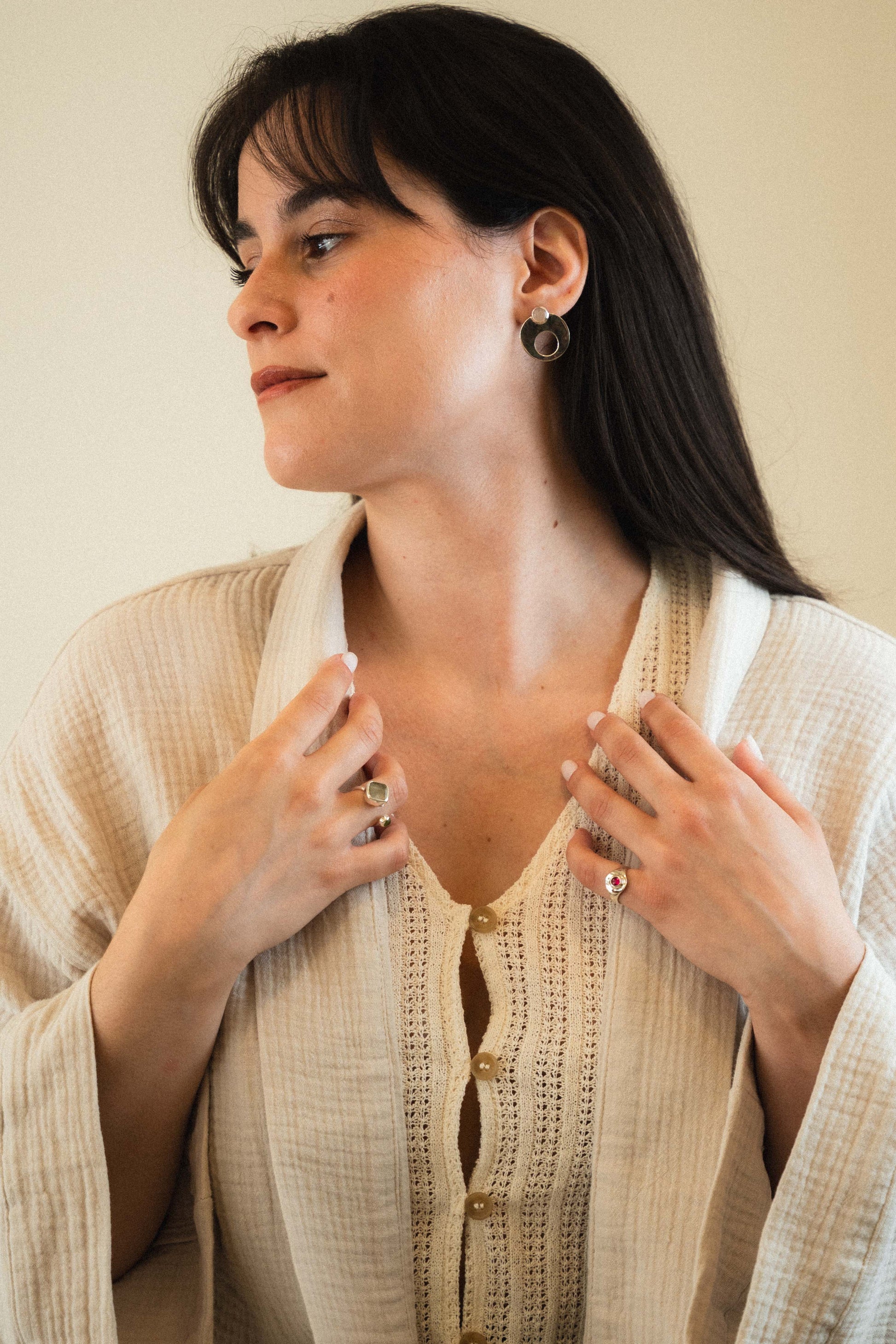 Every piece of jewelry is designed and handcrafted in our workshop in Patras, Greece. Each form is shaped with care and precision, infused with our passion for art. Each piece carries the silent imprint of the maker's touch, a unique rhythm that speaks of authenticity.