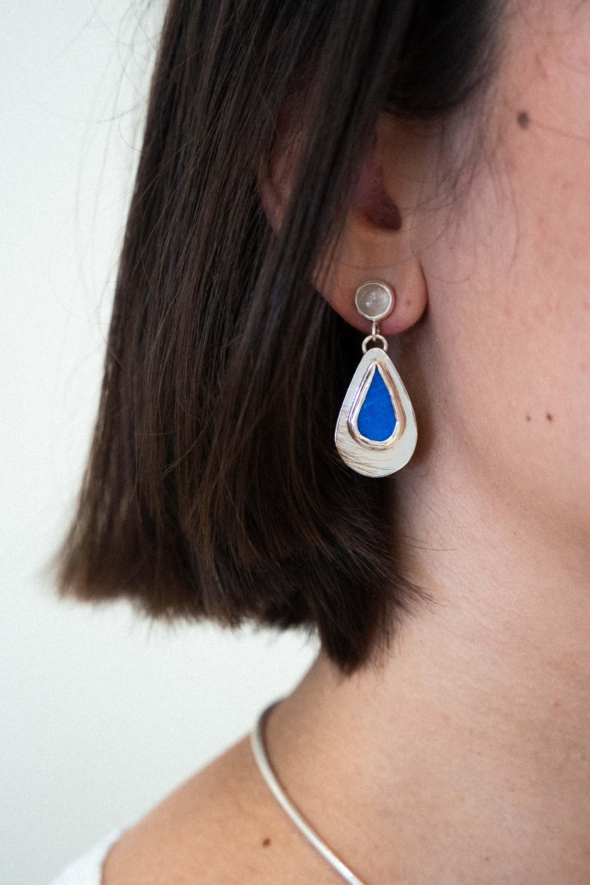 Umi are a pair of dangle earrings. Two unique lapis lazuli tear drops hanging on two deep red garnet semi-precious stones. Mysterious and timeless is the ocean. Endless in the orizon. Powerful in every wave. Calm beneath the surface. A symbol of unity, purification, and renewal.